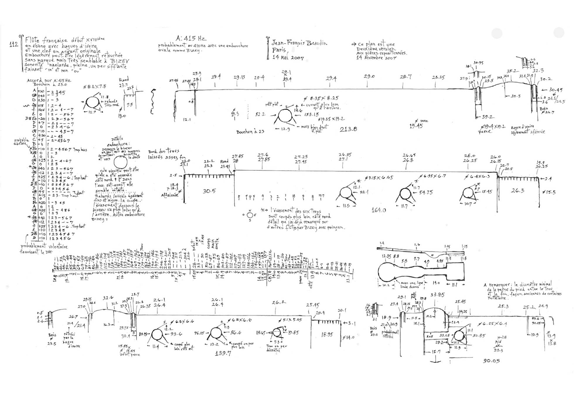 Through a combination of my research, measuring and drawing original flutes, making copies of instruments and my playing, I came to recognize that from about 1720 makers were following a kind of golden proportion in length and bore diameter to get the best results from every register of their flutes.